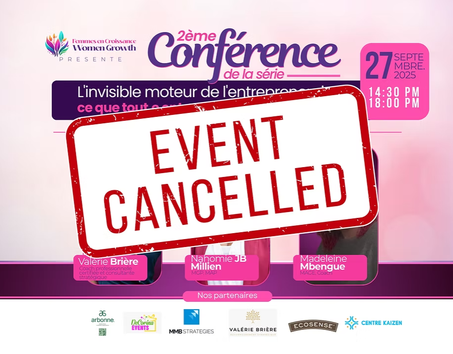 2ème Conférence de la sérieL'invisible moteur de l'entrepreneuriat : ce que tout entrepreneur doit savoir Date : 27 Septembre 2025Heure : 14:30 PM - 18:00 PM Intervenants : Nos partenaires : Centre Kaizen Arbonne Deconia Events MMB Strategies Valérie Brière Ecosense